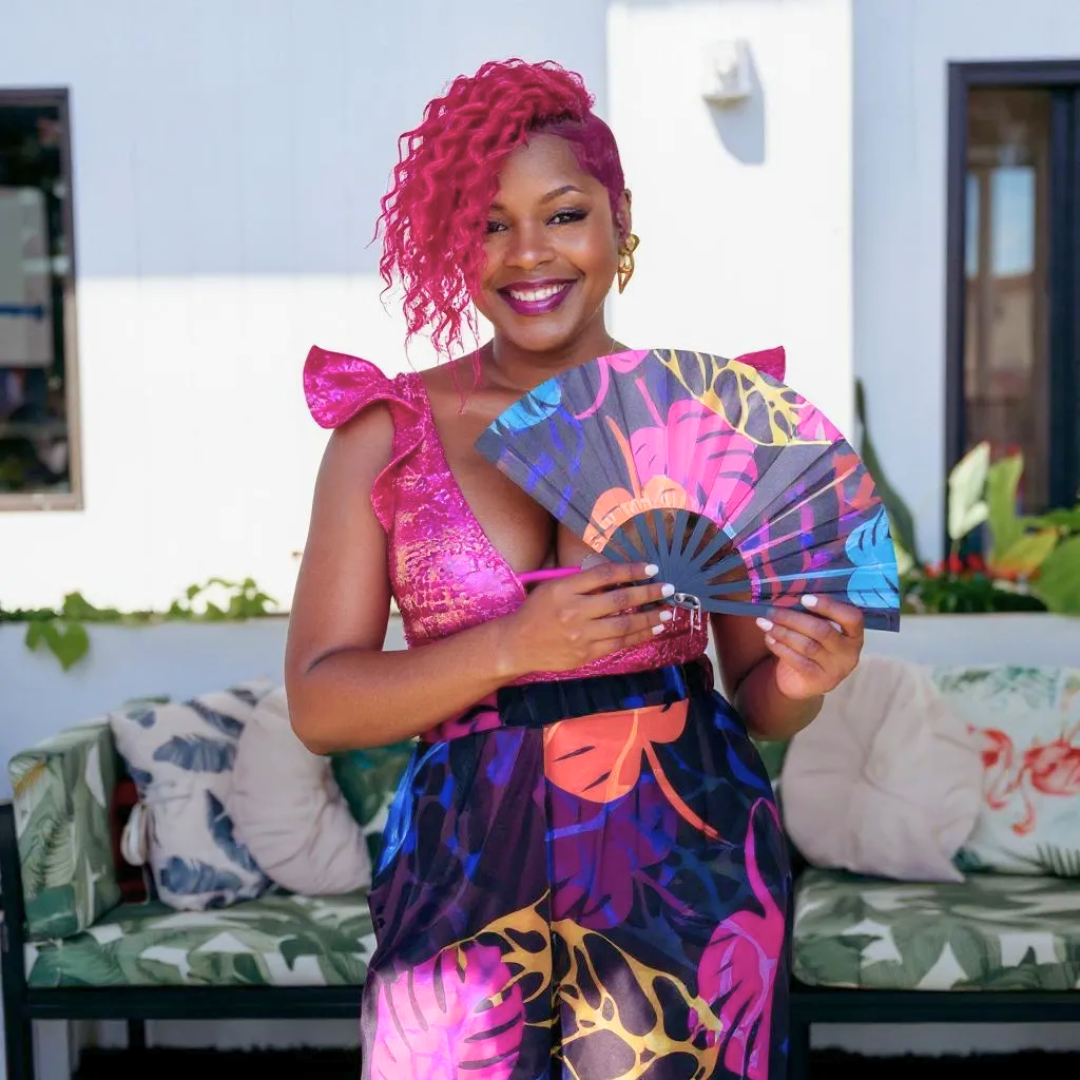 featuring our exclusive Island Tempo print, this fan is your go-to for cooling off and turning heads.